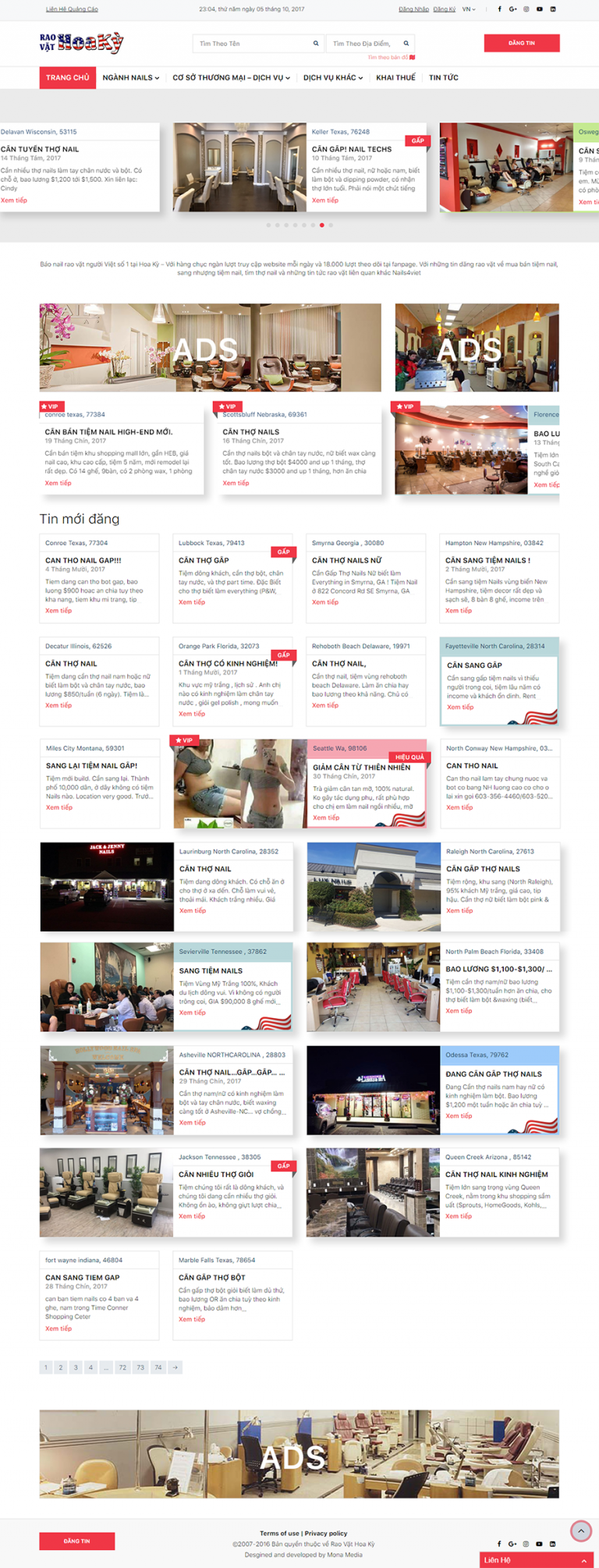 Một trong 3 trang rao vặt hàng đầu nước Mỹ. Mảng chính là mua bán tiệm nail, tìm thợ nail Mỹ